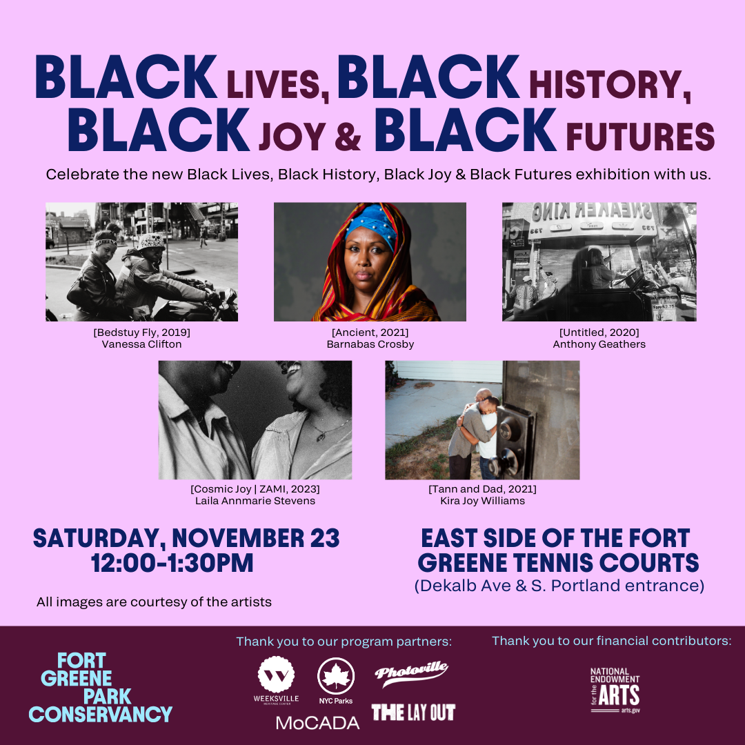 The Fort Greene Park Conservancy organized this exhibition in partnership with MoCADA, Photoville, The Lay Out, and Weeksville Heritage Center. This exhibition is presented as a part of NYC Parks' Art in the Parks program. Supported in part by the National Endowment for the Arts.